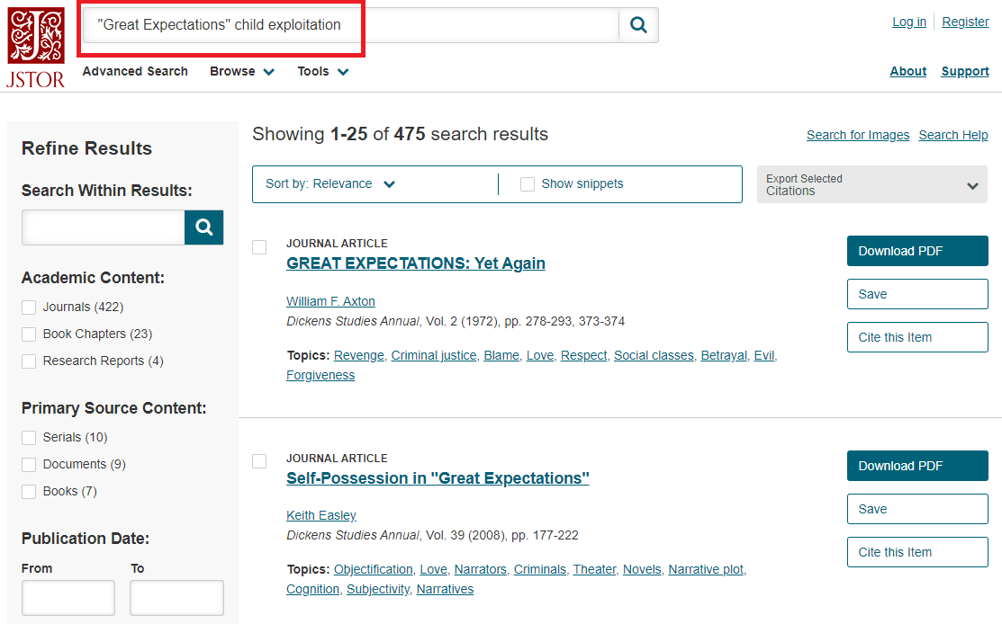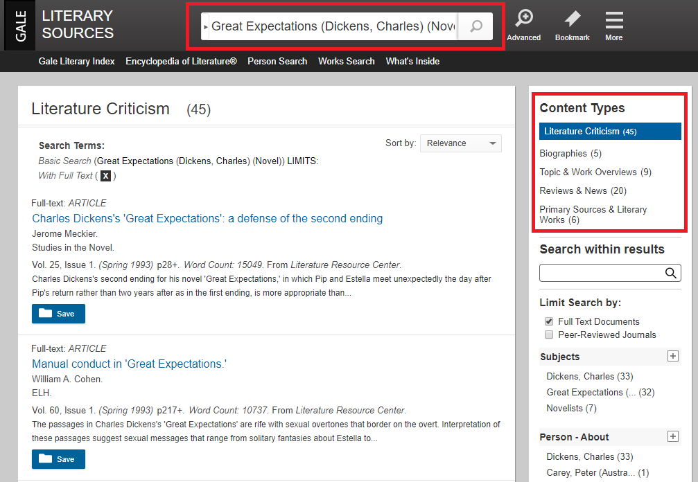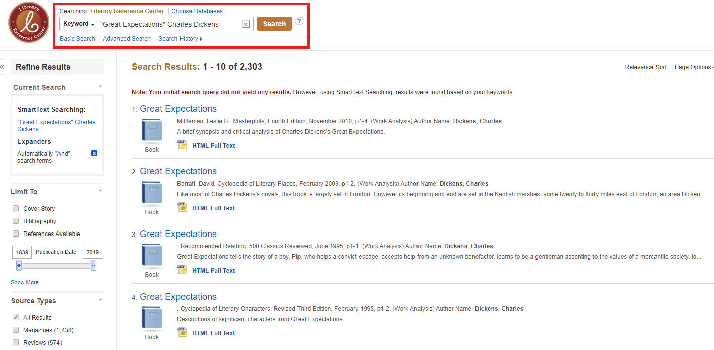 Year 9. Databases - example searches (pop ups): English. Great Expectations.